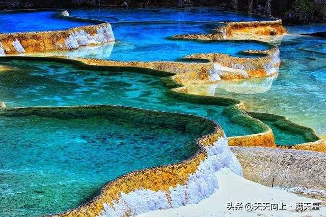 景区亮点:以钙华池闻名,五彩池、金沙铺地等景观如天然调色盘,海拔 3500 米以上的高原瑶池。