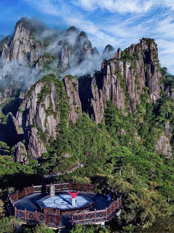 1990年入选世界遗产,以"五绝"闻名于世。迎客松展臂迎宾,飞来石傲立云端,西海大峡谷深不可测,每当云海翻涌,七十二峰若隐若现,宛如泼墨山水画。