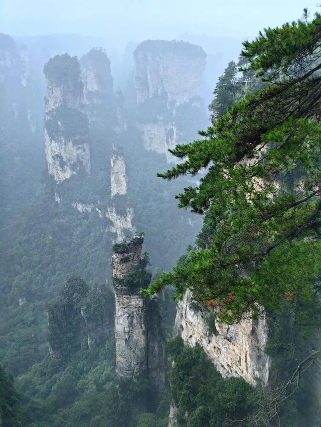 别在晴天去袁家界,那里是旅行团的天下。选个雨后的清晨去杨家界,雾气还缠绕在山腰,那些石峰像悬浮的岛屿。金鞭溪的猴子认得人,安静坐着它们就围过来,眼神机灵,比任何雕塑都生动。