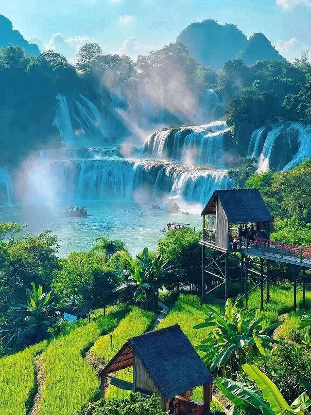 德天瀑布下午是顺光,拍照最透亮。但精髓是爬到瀑布顶的观景台,看中越两国的水怎样汇成一股。晚上别住景区,去明仕田园边的壮族村子,竹筒饭是用新鲜竹子现烤的,带着竹衣的清香。