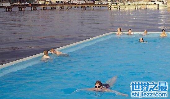 虽然不知道他们是怎么想的,但应该是为了游泳者的安全才在本来广阔的海域划分出单独的一块池塘来供游客游泳,这个划分无论对于室内还是在室外的游泳都是一大创新,它位于池柏林斯普雷河上,泳池有105英尺长夏天人们可以在顶部进行日光浴。
