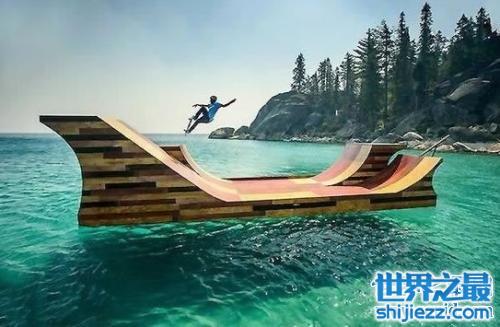 大家都觉得水上奇观都应该是自然构成的,很可惜上帝在造天地的时候把陆地和海洋划分的很明白,大多数的水上景观都是认为打造的,下面我要讲的是水上的滑板区这个独特的滑水板位于美国太广阔的湖中,如果你是滑板爱好者千万不要错过这个神奇的地方。