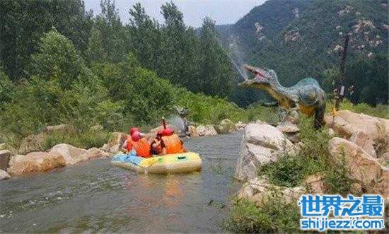 相信很多朋友一定对恐龙很感兴趣,那么在洛阳恐龙谷这个景区里,几乎百分之百的还原了恐龙的时代,河流众多,两岸草地如茵,郁郁葱葱的植物森林,仿佛真的置身于一个远古时代。许许多多的河流顺着地势流淌,人们就可以坐在一个气垫小船上漂流而下,时而湍急,时而平缓,特别刺激,非常好玩。