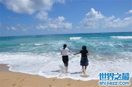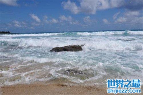 这个海滩也在泗桥区,海滩总长可以达到三千米,海滩的形状也是呈现出弯月的形状,这里的沙子犹如棉花一般软,走在上面一觉踩出一个脚丫印,看看那远处随风翻滚的浪花,还有那一望无际的碧水晴天交相辉映,构成了一幅幅美丽的画卷。