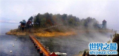 湖面的水绿油油的,虽然是山野之间的喝水,也有着海浪般的的气势,湖中偶见几个小岛,分布的没有什么规律,叠在一起,就像是神仙在下棋般,“神驰远景无疆,仅尽情领受,千重山色,万顷波光”是赞美这个美景最好的诗句。