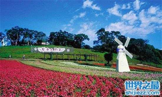 中国也有一处特别出名的花海,叫做台湾大溪花海农场。这里的鲜花种类特别多,他根据花的颜色由浅及深。排列在一起,形成美丽的形状。红的,黄的,蓝的,粉的,争奇斗艳,让人应接不暇,你能够看到来自世界各地的花的品种。