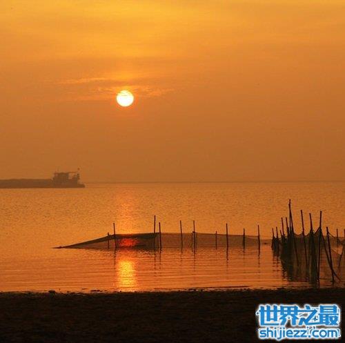 鄱阳湖是一个风景如画的江西景点,这是一个碧波荡漾的湖,这里的四周被群山包围,湖面在阳光的照射下发出耀眼的光芒,岸边的风景倒影在水中别有一番魅力,夕阳下的湖面有是别样的风采。