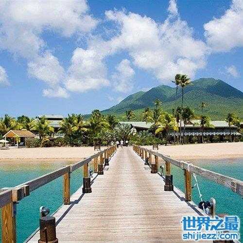 尼维斯岛是这个地区一个风景如画的岛屿,这座小岛上有苍翠挺拔的山脉,有茂密繁盛的椰林,有飘香的炫彩花朵,更有一望无际的沙滩海洋,你可以看到美丽的珊瑚礁和鱼群,非常夺目。