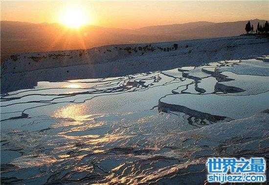 它位于土耳其的南部是非常有名的温泉度假胜地,当你站在它的附近,你会发现他非常的洁白洁白到你怀疑它是不是一块棉花糖,他早期在古罗马时代就已经是被作为风景区和疗养区,因为它里面的水质含有大量的铁元素,所以也被称为治疗皮肤病的神奇温泉。