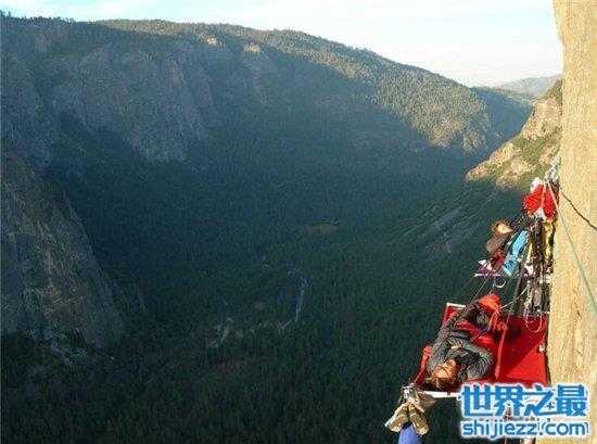 一般的露营方式,就是约几个朋友,在野外搭个帐篷,再搞个BBQ,就可以说是非常享受了。而在加州的约塞米蒂国家公园里,有着更加享受更加刺激的露营方式,把帐篷搭成睡袋,直接在悬崖峭壁上露营。看着高达上千米的悬崖,不知道露营者是否还能安稳的睡觉。