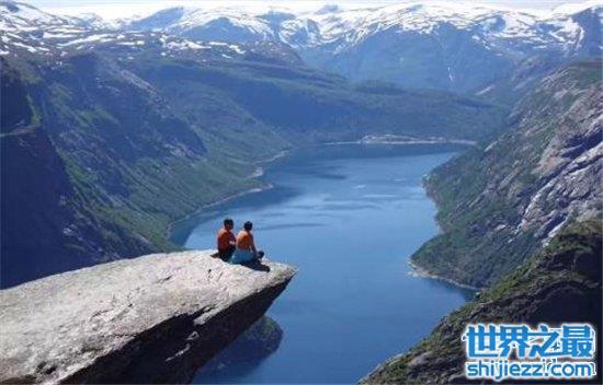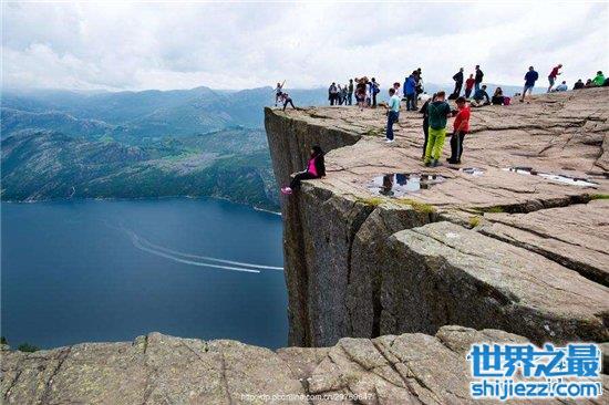 挪威布道石,是一个只有胆大的人才敢欣赏的风景。它高度达到了604米,崖下就是水深达10米的海峡,被称为世界上最危险的悬崖。由于属于自然风景,没有任何的防护措施,并且由于地势高,经常会刮起忽大忽小的风,而此时站在上面的,无一不是勇敢者。