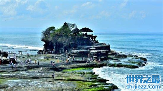 海神庙座落在巴厘岛之上,是岛上的三大神庙之一。这座神庙常年孤独地停留在海面,只有当海水退潮时才能短暂地与陆地相连。这里与金巴兰沙滩同样以落日奇景而闻名,只不过与金巴兰沙滩静谧的落日不同,这里更多的是浪花拍打礁石的雄阔壮美。