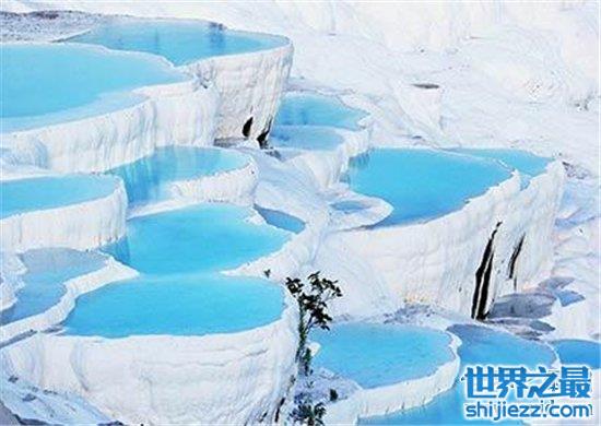 棉花堡是世界上最美的地方排名之一,它位于土耳其,其实就是一个温泉,不过就是这个地区一直覆盖着石灰石所以显得像一片片的棉花,有很多的人来这里泡温泉,这种露天的温泉更能让人感到放松,所以来棉花堡泡温泉的人特别多。