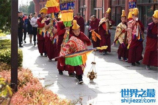 参加法会的小喇嘛这张图片是一个小喇嘛在风雪中参加法会的画面,画面中很多小喇嘛穿着整齐的去参加法会,其中一个小喇嘛回过头来笑容满面,看见他的脸颊冻的通红,但是他仍然很开心,可见他生活的乐观,即使是在风雪中艰难前进他也是开心的,因为他在不断向前。