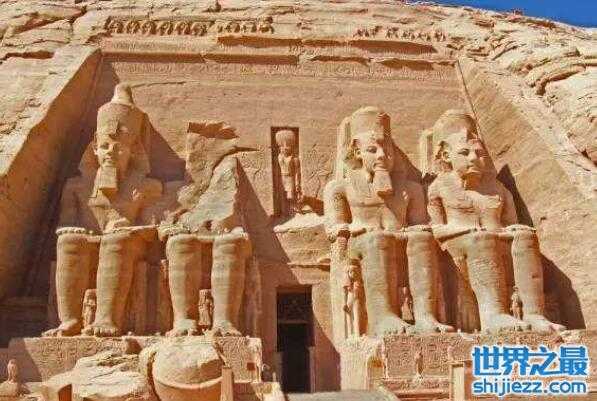 据说阿布辛贝神庙的名字来源于最早带西方人去到现场的向导的名字。这个神庙位于埃及阿斯旺纳赛尔湖西岸,建造于公元前1300至前1233年之间,是由巨型的拉美西斯二世摩崖雕像、前后柱厅、神堂和牌楼门共同组成,也是被联合国教科文组织认定的世界文化遗产,是努比亚遗址的一部分。