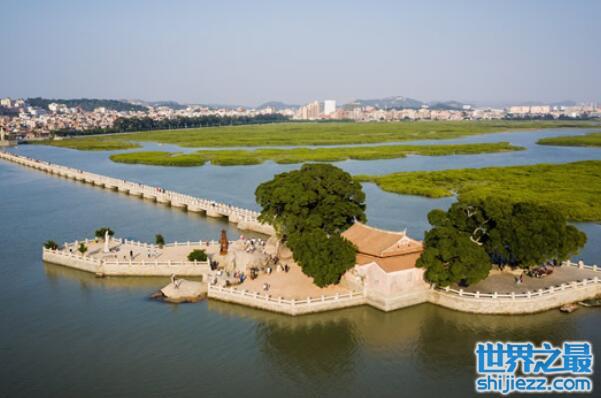 洛阳桥这处建设在福建泉州市境内的宋代古桥,是有着海内第一桥美誉的跨海梁式大石桥,全长834米的桥梁,连接着洛江区和台商投资区,在1938年被日本飞机炸毁,而后在1996年经过全面修剪恢复旧貌,成为世界文化遗产之一,也成为22处代表性古迹遗址之一。