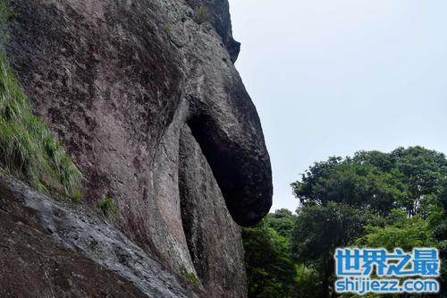 在菜溪岩景区,最吸引人的便是这“心动石”了,形状像一个蘑菇,也被称作为“蘑菇石”。这是两块巨石相叠,石头高27米,在空中突起,中间的接触面积大概只有1平方米左右,看起来摇摇欲坠,十分危险,这恐怕是中国最危险的石头了吧,不少网友看到照片就声称不敢去,感觉马上就要掉下去。