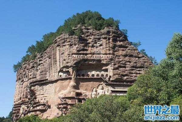 麦积山石窟也是闻名世界的艺术宝库,被称为东方雕塑馆。它建在一座圆锥体、中间粗大、底部细小、状似农家麦垛的麦积山上。其洞窟多开凿在二三十米及至七八十米高的悬崖峭壁上,洞窟之间全靠架设在崖面上的凌空栈道通达,这些栈道就已是很刺激、很有寻古之况味的事。