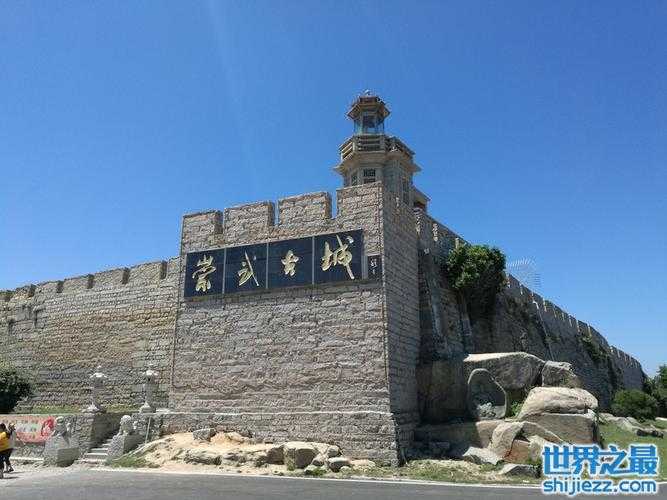 崇武城墙位于福建省惠安县南70里濒海的尖岬上。城墙周长2.6公里,墙基宽5米,高7米,全用花岗石砌成,四方设门,上建门楼,并设烽火台三座。明代名将戚继光、郑成功都曾在此驻守。是我国至今保存较完好的古代海防城堡。