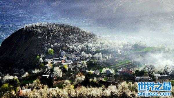 这里有雪域高原规模最大的梨花奇景,梨花处处有,唯独赞金川。金川的梨树很高,最老的一棵已经生长了100多年。这棵树很高,到现在已经长得很好了,一簇簇鲜花盛开,花瓣像天鹅绒一样柔软。