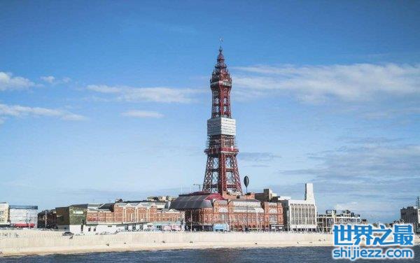 受巴黎埃菲尔铁塔启发,布莱克浦塔是一个海滨旅游胜地,于1894年5月向公众开放,高达518英尺(158米)。位于塔顶附近的是一个固体玻璃的空中漫步,它在英格兰西北部,从380英尺(116米)高的高度,在一个晴朗的日子,在英格兰西北部的湖区和利物浦提供了壮观的景观。