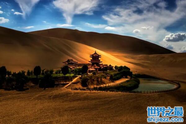 敦煌鸣沙山位于甘肃省敦煌市南五公里处巴丹吉林沙漠和塔克拉玛干沙漠的过渡地带,鸣沙山月牙泉景区是地处敦煌市境内的国家5A级旅游景区。这里的泉水因整体形状呈弯弯的月牙形而得名,配合着周边独特的沙漠景观,自古以来就被定为敦煌八景之一,现在还有了塞外风光之一绝的美誉。来到甘肃必去的十大景点,它就是其中之一。