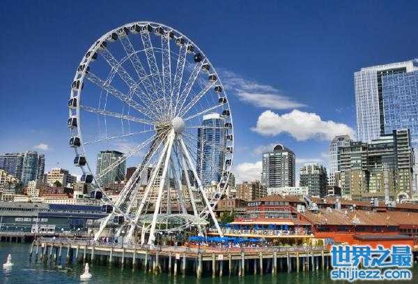 西雅图摩天轮是美国西海岸最大的观光摩天轮,直立高度有175英尺。它全年开放,拥有全封闭的座舱和一个有屋顶的等待区域;就算是下雨也不能阻止摩天轮的运转。这是一个绝佳的从高处观赏西雅图方法。