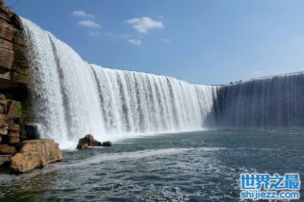 昆明瀑布公园又名牛栏江瀑布公园,公园内有着亚洲第一大人工瀑布,瀑布高约12.5米,宽幅约400米,景色非常壮观。