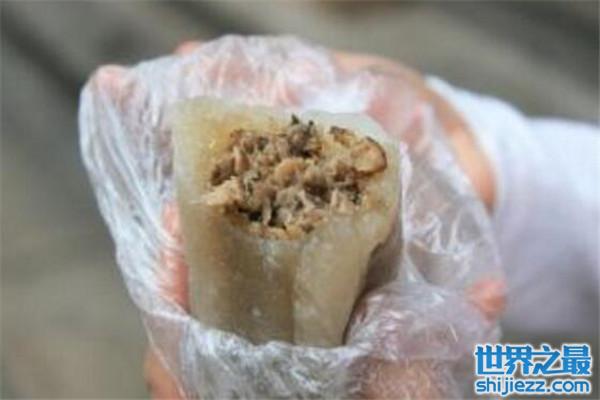 金包银主要的原材料在是糯米,里面加入蔬菜香菇等配料,不仅外观造型独特吸引人,而且很Q的糯米和丰富的口感甚是吸引人。