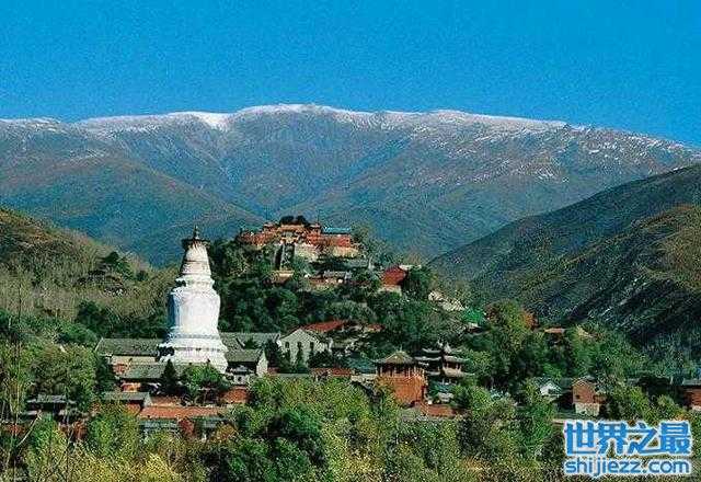 五台山,又名清凉山,是太行山的支脉。它方圆五百里,地跨山西、河北二省四县,但其大部分在山西五台县境内。东台、西台、南台、北台和中台是五台山的五大高峰,其中,尤以北台的叶斗峰最为高峻,海拔3058米,是我国华北地区最高的山峰,素有“华北屋脊”之称。五台山虽然峰峻于天,但峰顶却极其乎坦、宽阔,佛教徒说此五台乃文殊蒈萨点化而成,象征文殊菩萨的五种智慧。
