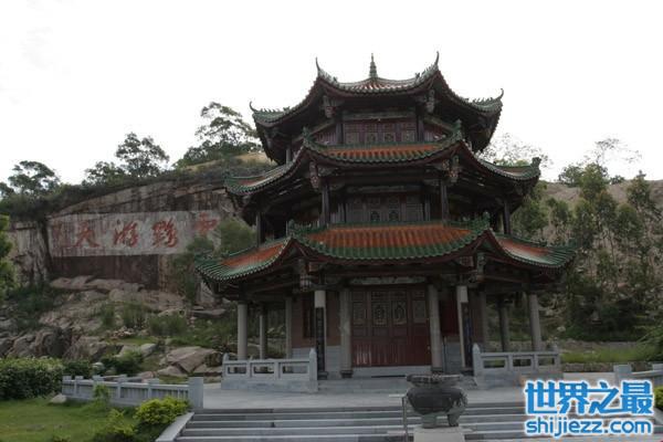 虎溪岩寺,位于福建省厦门市东北隅玉屏山麓,亦名「玉屏寺」。以庐山东林寺有「虎溪三笑」故事,故亦名此寺为「东林寺」。山上林木蓊郁,怪石嶙峋,鸣泉清澈,岩壑幽深。其中洞口朝东的棱层洞,最先看到月光照在洞内罗汉和土虎之上,形态逼真,景色清幽,故有「虎溪夜月」之称,列为厦门大八景之一。虎溪岩顶有棱层、摩天的摩崖石刻,字径数尺。岩壁上有明何乔远、池显方及清黄日纪等名士题咏石刻。