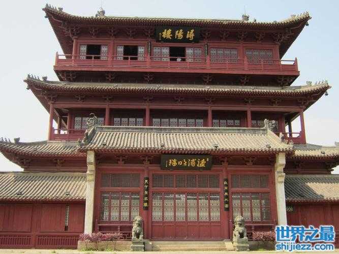 浔阳楼面江而立,古典小说《水浒传》以此楼为背景,演绎出宋江题反诗、李逵劫法场等故事。1988年修复,为仿宋建筑,外观三层,高31米,九脊歇山式顶,飞檐翘角,风动铃鸣。