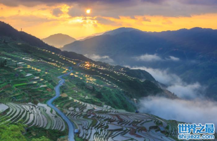 与广西龙胜龙脊梯田、云南元阳哈尼梯田并称为国内“三大梯田奇观之一”。加榜梯田是苗族寨子世代耕耘的杰作,依山而开,随山势地形的变化呈现出不同的秀丽线条。这里不仅规模宏大,气势磅礴,而且线条优美,从整体形态来看,加榜梯田集天下梯田之精华。梯田间的山村、小寨与其交相辉映,和大自然融为一体,体现出人类与大自然的和谐之美。加榜梯田在每年4、5月间开始灌水,10月初最适合摄影。