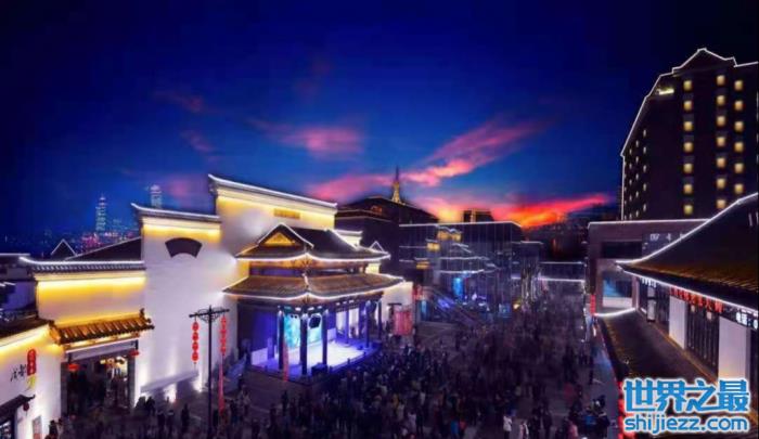 如果做高铁来宿州,出了宿州东站,不妨去旁边的绿地衢坊街留宿一晚,看看夜景。现代灯光技术加上仿古建筑,让人仿佛身在梦中。走在街区里,各式各样的彩灯高高悬挂在半空中,伞形的、灯笼形的,最别出心裁的是横幅形的彩灯,一行行或诗句或情书或段子的标语悬挂在空中,每一个来这里的人都能从标语中体会到自己的专属氛围。