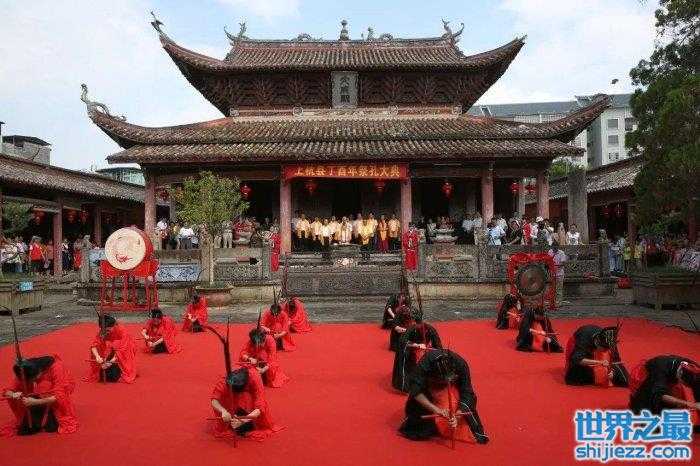 又称孔庙,学宫,位于福建省上杭县城区轴心,即解放路东段。据乾隆版《上杭县志》记载,该庙始建于宋嘉定十六年(公元1223年),后因毁于水或坏于蚁,于明嘉靖二十七年(公元1548年)在原地重建,原占地8713平方米,以大成殿为中心,分前、中、后三门,殿前建东、西两庑和名宦祠、乡贤祠、戟门、泮池、棂星门、殿后建明伦堂、崇圣殿,左右还有尊经阁、教谕署、紫阳书院、周公书院、入圣第一门及四斋五祠等二十多座美轮美奂,金碧辉煌的门、廊、殿、阁,技艺精湛,宏伟壮观,是我省保存较完整、最具特色的文庙,成为杭邑历代文人雅士尊孔祭孔、弘扬儒学、祈求功名、聚文会友的高雅圣地。