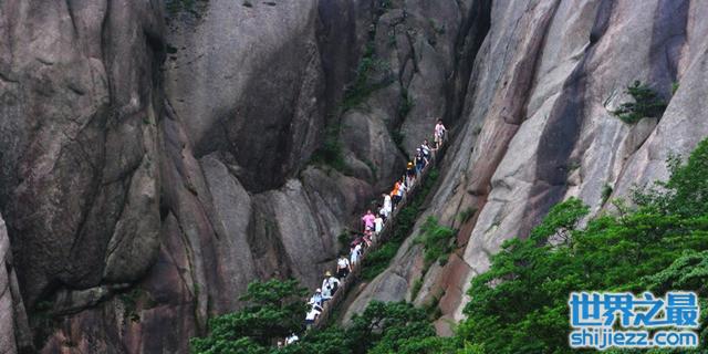 一线天顾名思义,只能容许一人通行,道路险峻,几乎都是90°,且没有中途休息点,也就是说一旦走上桃花道,那么你只能前行不能后退,也不能超车,更不能插队。