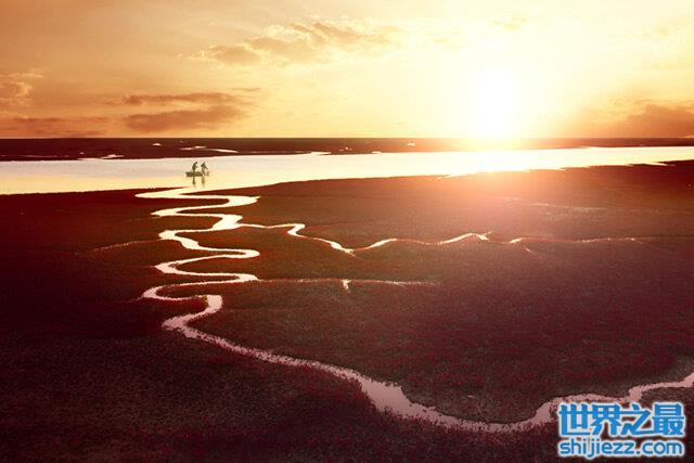 红海滩风景区以红海滩为特色,以湿地资源为依托,以芦苇荡为背景,再加上碧波浩渺的苇海,数以万计的水鸟和一望无际的浅海滩涂,还有许多火红的碱蓬草,被喻为拥有红色春天的自然景观。每当秋季,碱蓬草鲜红欲滴铺成一片海洋,而稻田间隙有距,整齐的划成一片金黄。碱蓬草每年4月长出地面,初为嫩红,渐次转深,9月是它红的浓烈的时候,9-10月中旬是观赏红海滩佳季节,10月中旬后草色开始变紫。中秋节一般处于9月中下旬,正好是红海滩美的季节,中秋佳节来这里看红海滩、观鸟、吃河蟹。