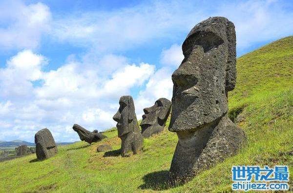 复活岛巨石阵位于距智力海岸约3800海里的一个孤岛上,1722年复活节被海航探险家雅各布登岛并命名。这些共约一千体的石像静默地立在岛上,其景震撼。