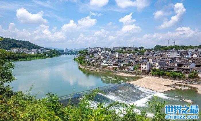 这里被称为“江南第一都江堰”,这里是新安江上游最古老、规模最大的古代拦河坝。沿着江畔走走,春日时分可见山坡上的油菜花,江中的古渡小舟。