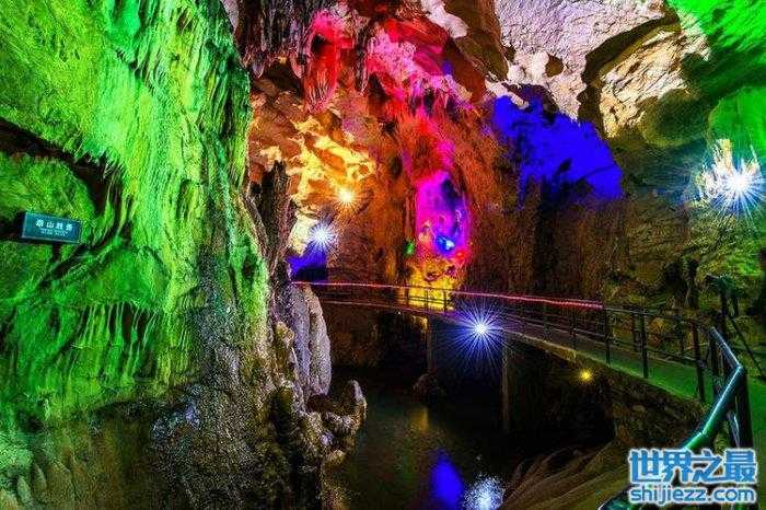 梅山龙宫,位于娄底市新化县油溪乡高桥村,为大型溶洞景观;全洞长度超过3000米,分九层,包括龙宫迎宾、碧水莲宫、玉皇天宫、龙宫仙苑、龙宫风情、龙凤呈祥六大场景,巧夺天工,精彩纷呈。景区除溶洞景观外,还有峡谷、峰林、绝壁、暗河等多种岩溶地貌呈现。