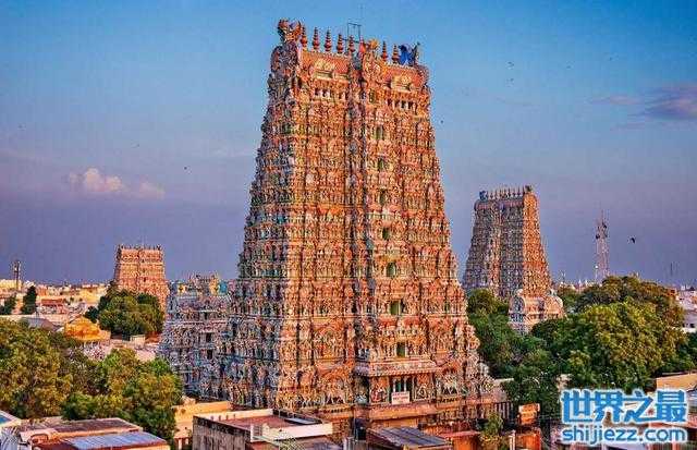 印度马杜赖的米纳克什安曼寺,很难想象,要创造一个如此细致的礼拜场所,需要有多大的耐心和奉献精神。米纳克什安曼寺以其塔楼而闻名,每座塔楼上都镶嵌着成千上万的五颜六色的神仙、恶魔和动物的石像。