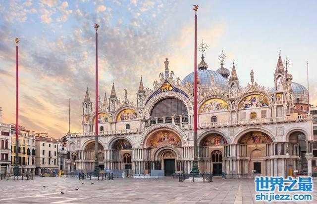 意大利的圣马可大教堂是威尼斯最知名的建筑,也是世界上最著名、设计最豪华的大教堂之一。它建于9世纪,被大火烧毁后于932年重建。它的拜占庭式建筑占据了圣马可广场的主导地位,它的圆顶、壁龛、花卉装饰以及描绘圣经场景的难以置信的细节浮雕。