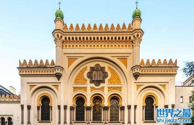 捷克的布拉格有几座令人惊叹的犹太教堂,包括这座位于犹太区中心地带的美丽教堂。这座建于1868年的西班牙犹太教堂因其摩尔式的安达卢西亚式内部而得名:镀金装饰、栏杆、复杂的马赛克、雕刻和彩色玻璃令人眼花缭乱。这座黄油黄色的建筑坐落在老学校的旧址上,这座城市最古老的犹太礼拜场所,在纳粹和共产党的统治下被忽视,直到19世纪后期被犹太博物馆复兴、修复并最终重新开放。