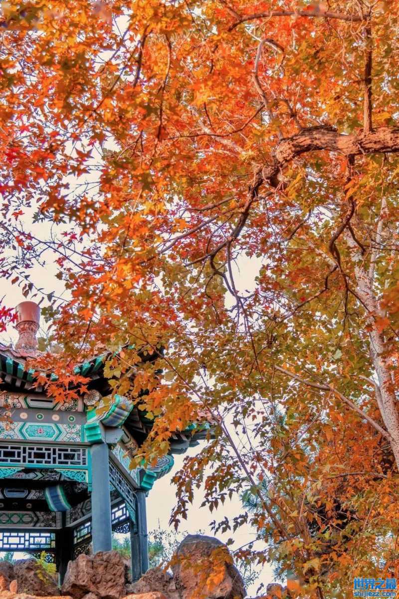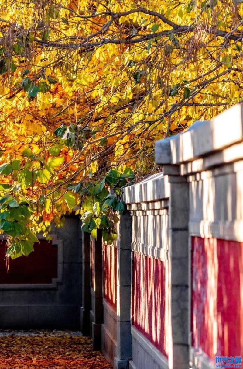 秋色染上枝头,墨绿褪去,树叶泛着金黄,抬头仰望,秋色掩映在步道外的每处景致之间。