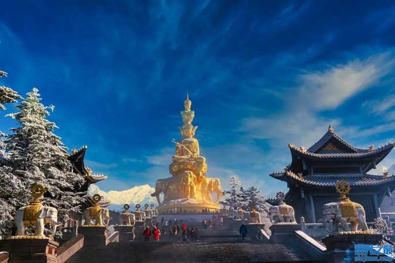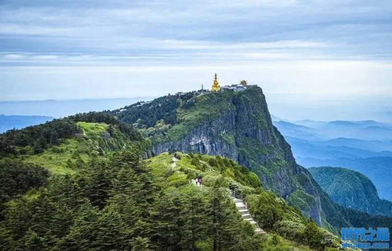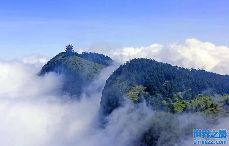 峨眉山位于四川省乐山市,是中国“四大佛教名山”之一,地势陡峭,风景秀丽,素有“峨眉天下秀”之美誉,万佛顶海拔3099米,为峨眉山的最高峰。《峨眉郡志》云:“云鬘凝翠,鬒黛遥妆,真如螓首蛾眉,细而长,美而艳也,故名峨眉山。”