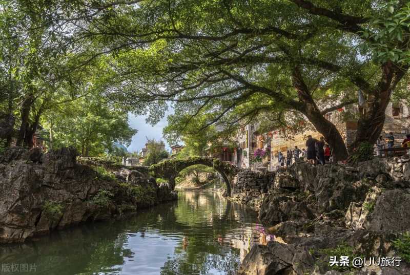 黄姚古镇位于广西贺州,周围奇峰耸立,镇内竹木森森,清溪环绕,其建筑按九宫八卦阵势布局,属岭南风格建筑,与周围山水融为一体。街道全部用灰黑色石板镶嵌而成,虽历经沧桑,依然完好平整。