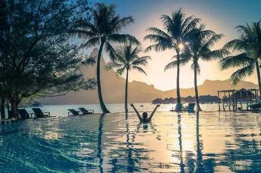 4、法属波利尼西亚的波拉波拉岛: “波拉波拉岛是大溪地最著名的岛屿。水上平房和水下冒险对你来说如何?对我们来说,这是我们想要从遗愿清单目的地获得的一切。”