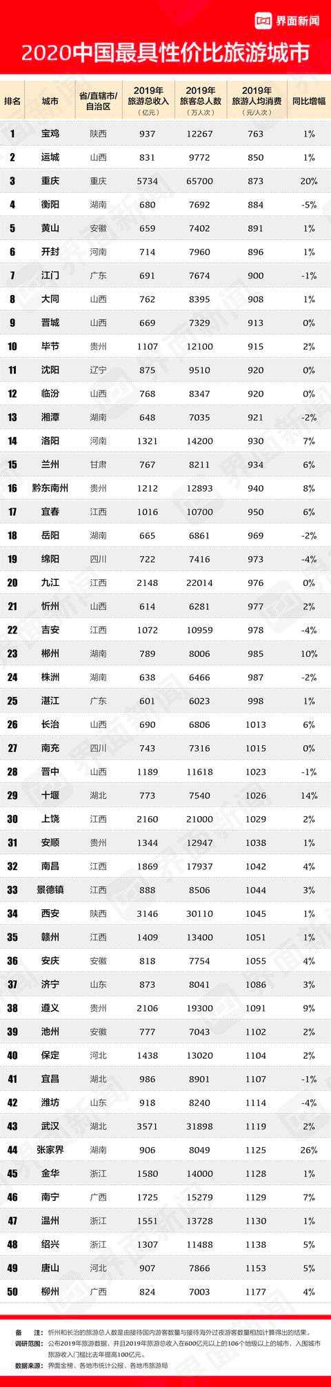 陕西宝鸡是2020年中国最具性价比的旅游城市,其次为山西运城。无论如何,相较于其他知名旅游目的地,宝鸡与运城多少显得有点单薄。
