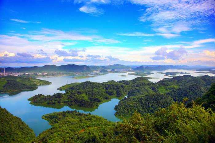 得益于贵州独特的喀斯特地貌,红枫湖中分布着100多个岛屿。每个岛屿都有自己的特点,在占地200多平方公里的风景区中游玩,仿佛置身于一副风景画之中,轻松惬意。