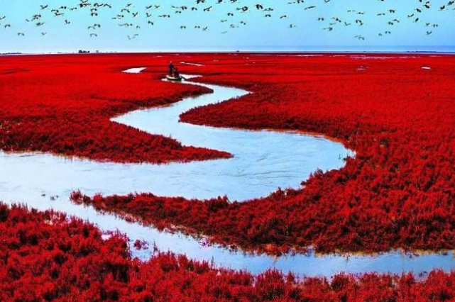 详细介绍:红滩涂我与我国的盘锦市,这里的碱蓬草因为海水和土地的原因,是由绿逐渐变红,远处看起来非常的美艳,许多游客会不远千里的赶来这里,只为欣赏独特的美景。